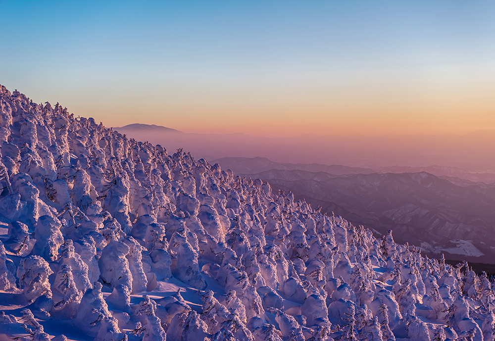 極寒の風と雪がつくり出す樹氷の造形を通して、